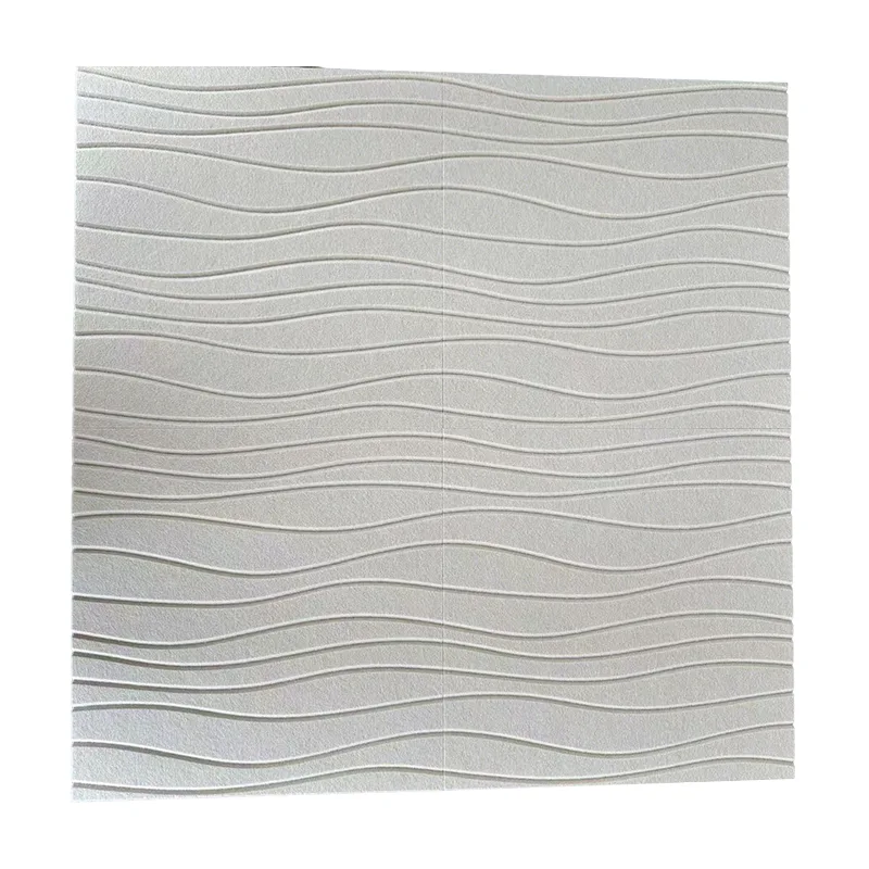 2. Vysoce účinná absorpce zvuku: Základní proces „vpichování jehlou“ je naším technickým tajemstvím. Mikropórová matrice tvořená tisíci vpichů umožňuje akustickému panelu Beige Wave PET Felt Acoustic Panel dosáhnout koeficientu absorpce zvuku přes 0,8 při specifických frekvencích (se vzduchovou dutinou). Jeho použití může výrazně zkrátit dobu dozvuku v interiéru, díky čemuž bude řeč jasnější, hudba čistší a prostředí tišší. 3. Šetrné k životnímu prostředí: Náš akustický panel Beige Wave PET Felt obsahuje více než 50 % recyklovaných polyesterových vláken a samotný produkt je na konci svého životního cyklu recyklovatelný.